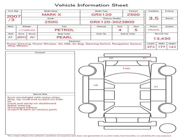 2007 TOYOTA MARK X 250G