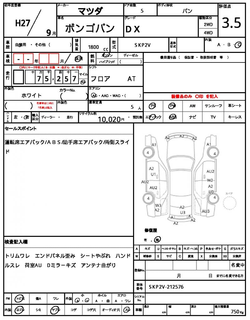 2015 MAZDA BONGO VAN DX