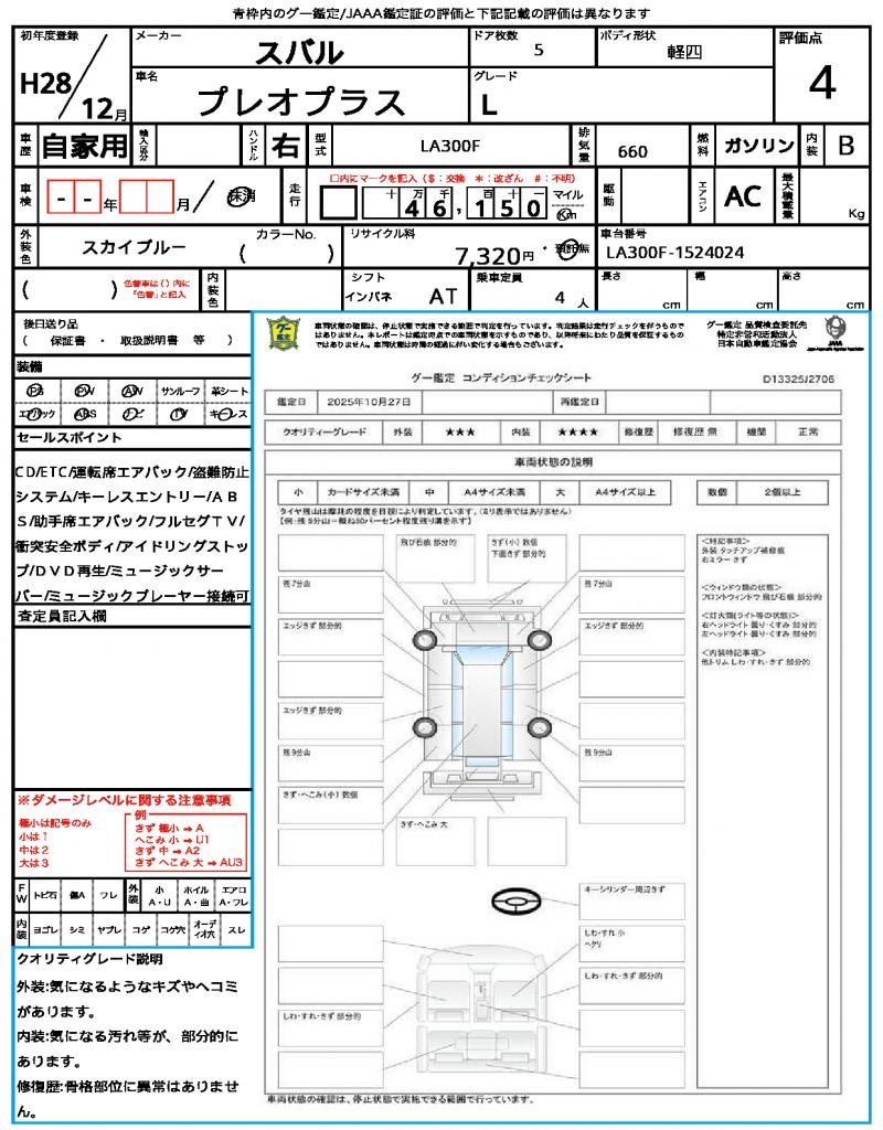 2016 SUBARU PLEO PLUS