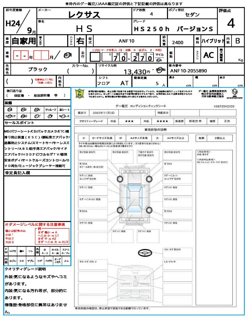 2012 LEXUS HS