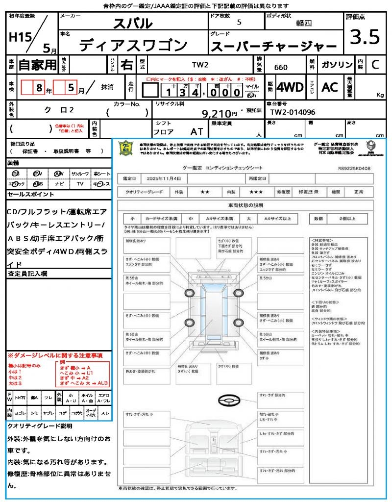2003 SUBARU DIAS WAGON SUPER CHARGER