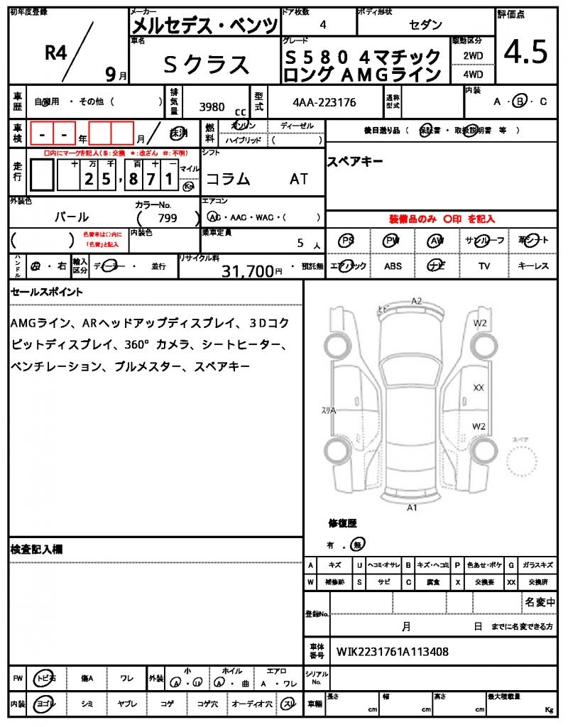 2022 MERCEDES BENZ S CLASS (Left Hand Drive)