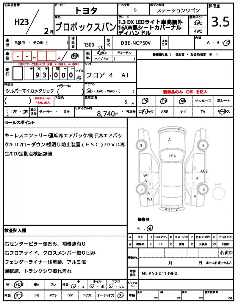 2011 TOYOTA PROBOX VAN