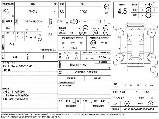 2012 TOYOTA MARK X 250G
