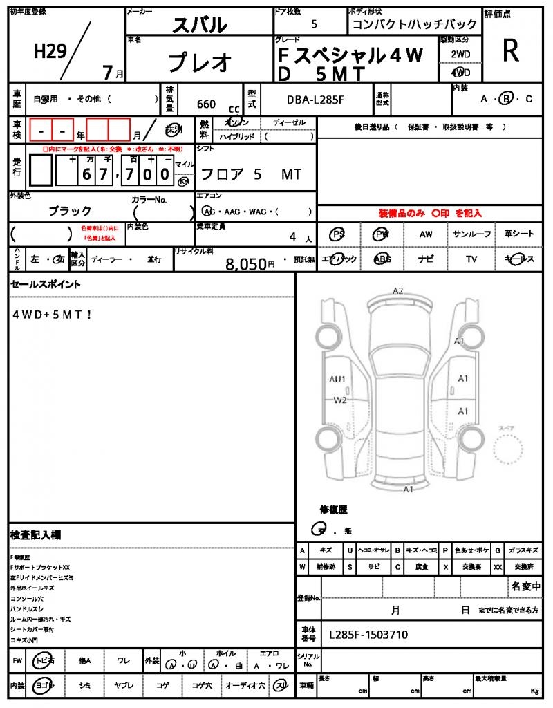 2017 SUBARU PLEO