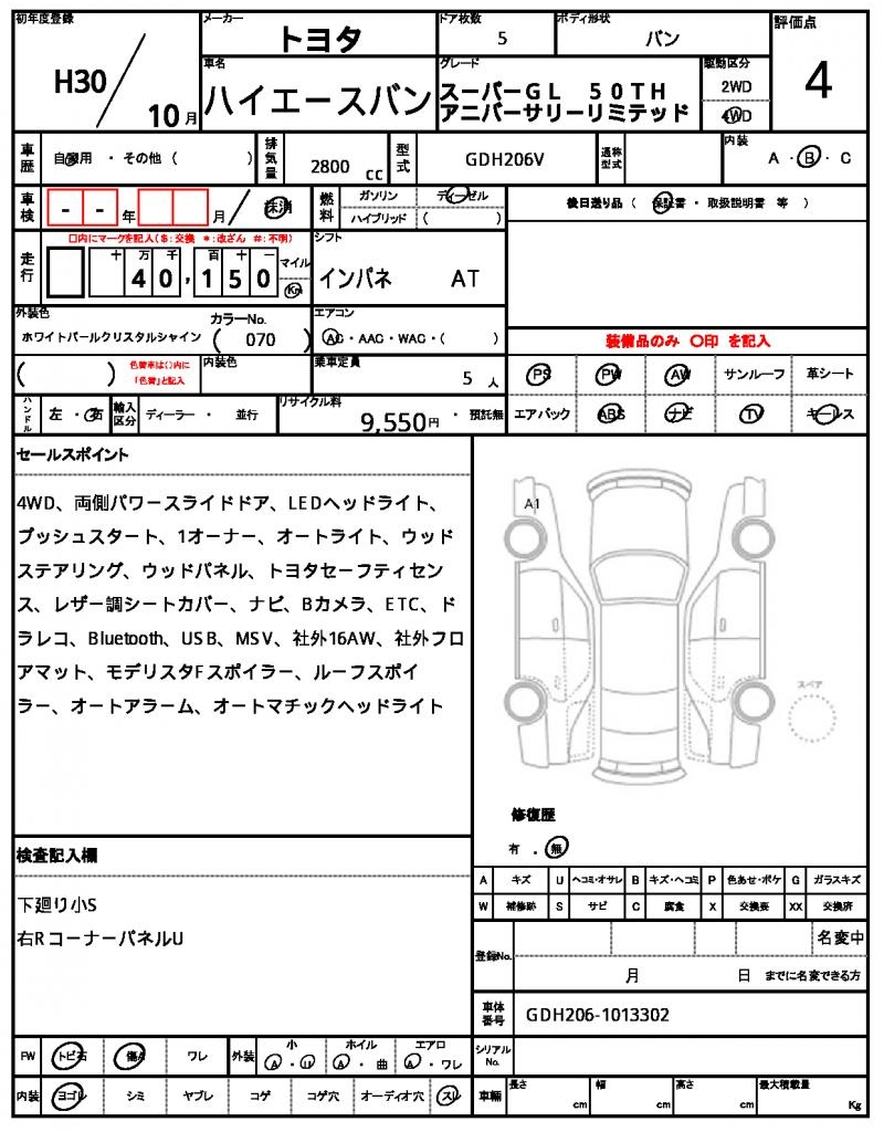 2018 TOYOTA HIACE VAN