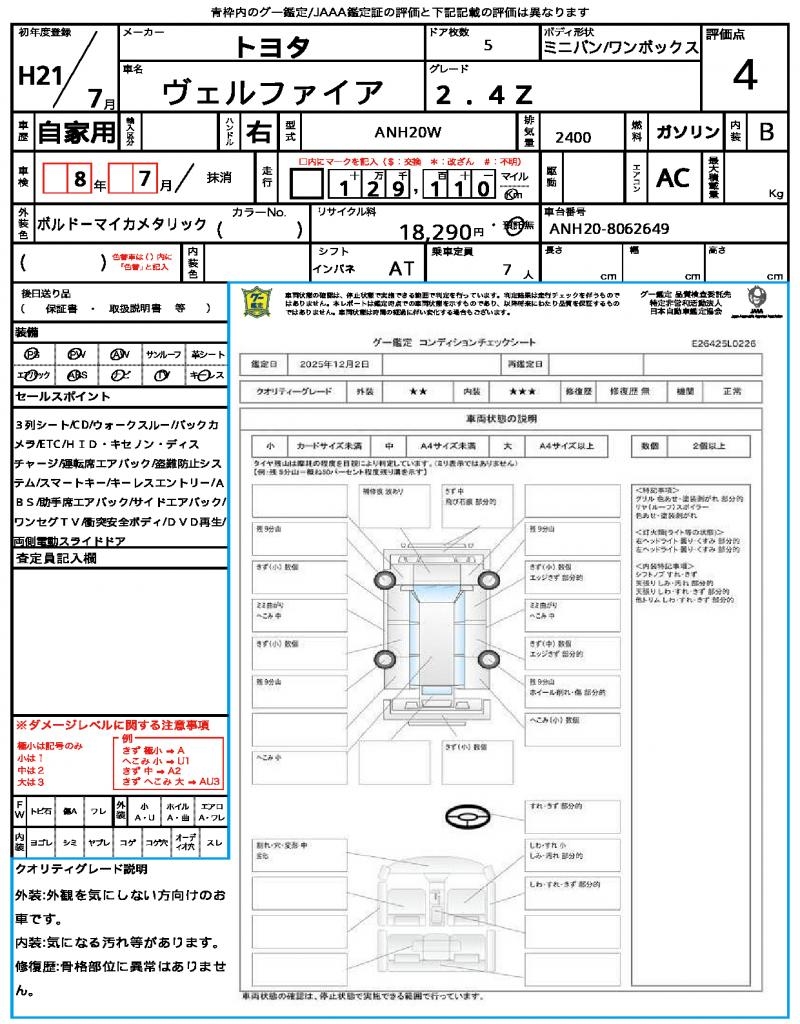 2009 TOYOTA VELLFIRE 2.4Z