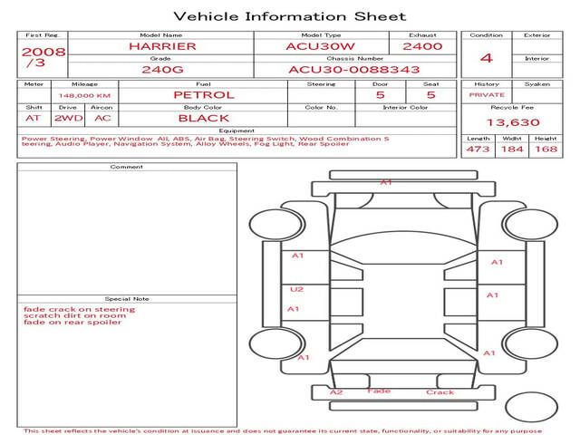 2008 TOYOTA HARRIER (LEXUS RX300) 240G
