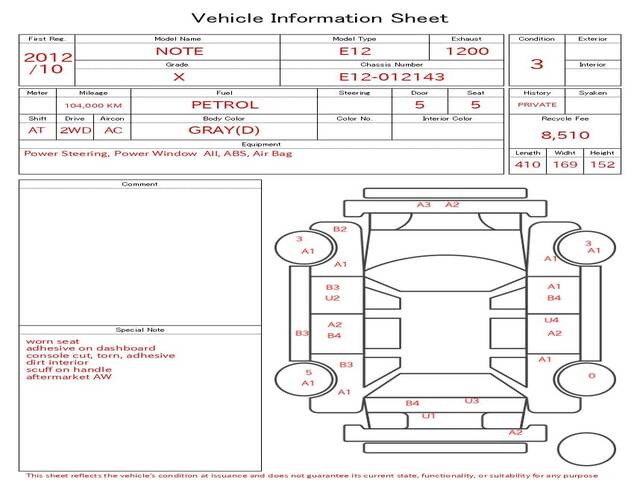 2012 NISSAN NOTE X