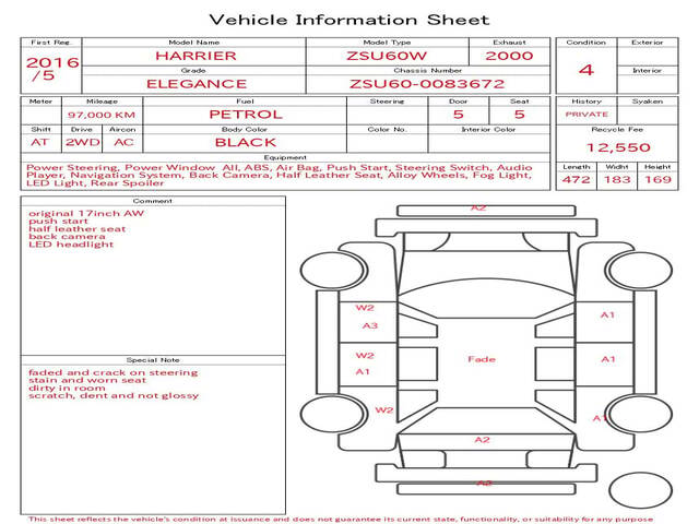 2016 TOYOTA HARRIER (LEXUS RX300) ELEGANCE