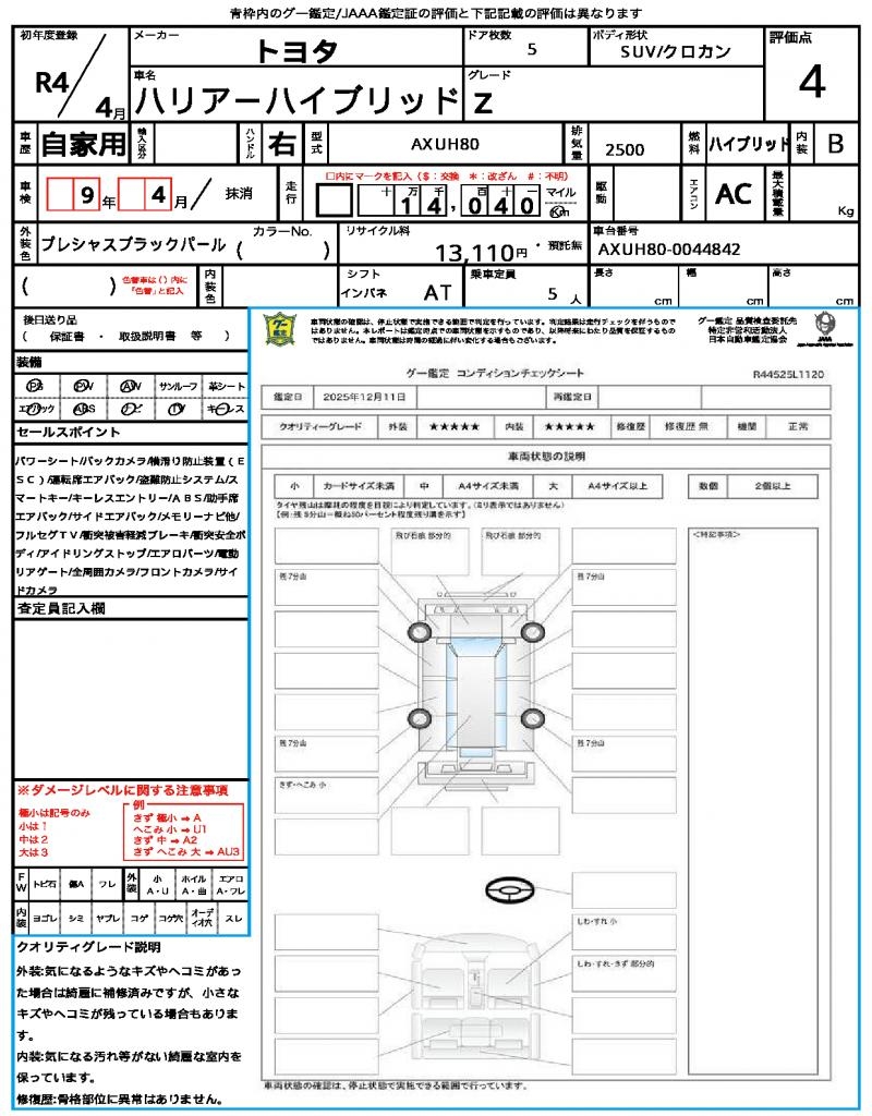 2022 TOYOTA HARRIER HYBRID Z
