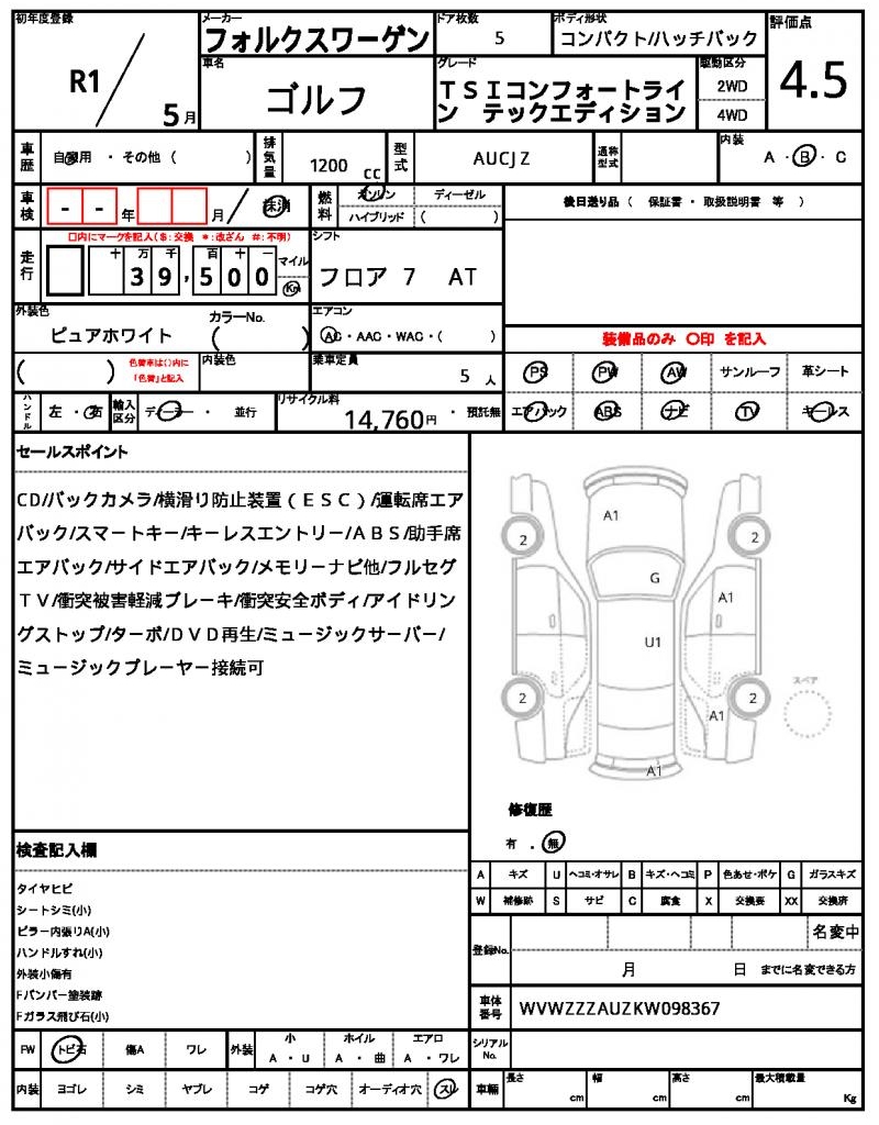 2019 VOLKSWAGEN GOLF
