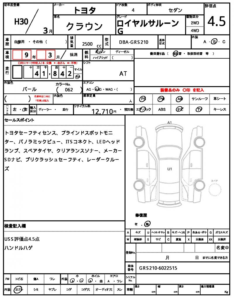 2018 TOYOTA CROWN ROYAL SALOON G