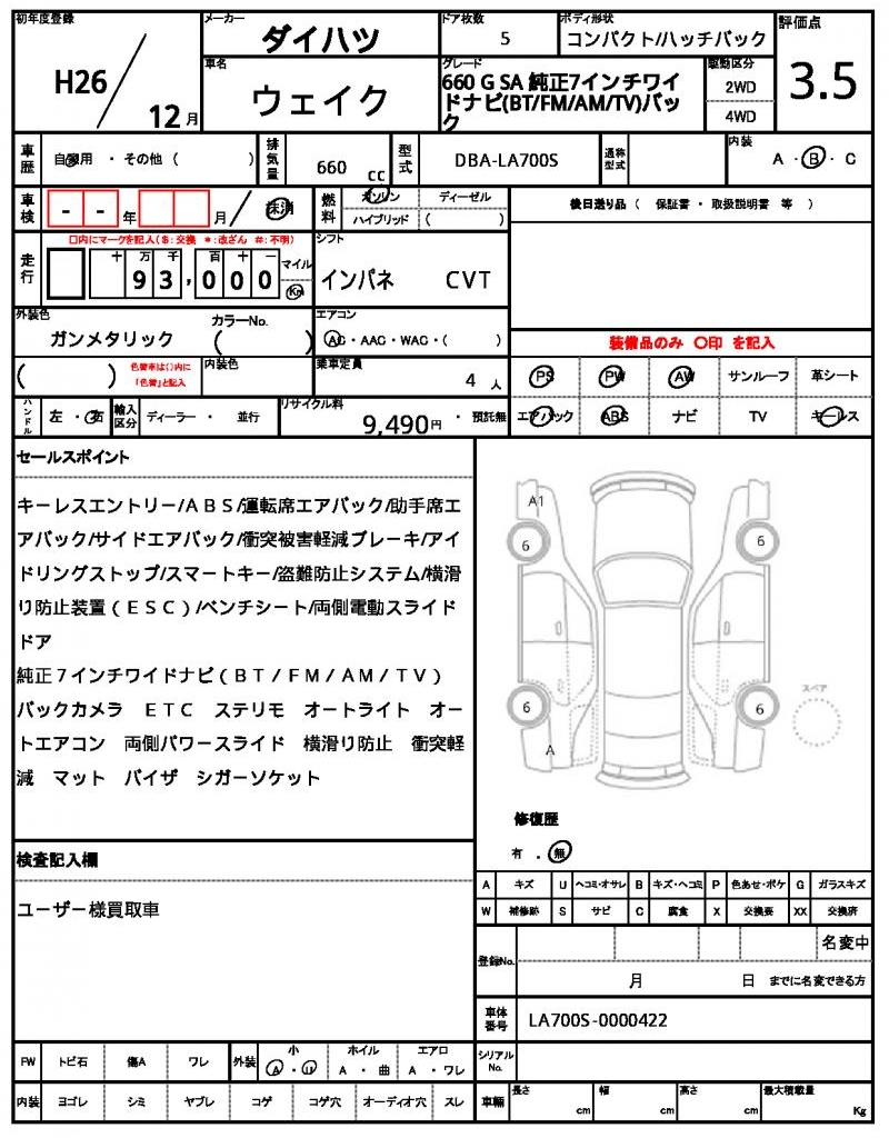2014 DAIHATSU WAKE