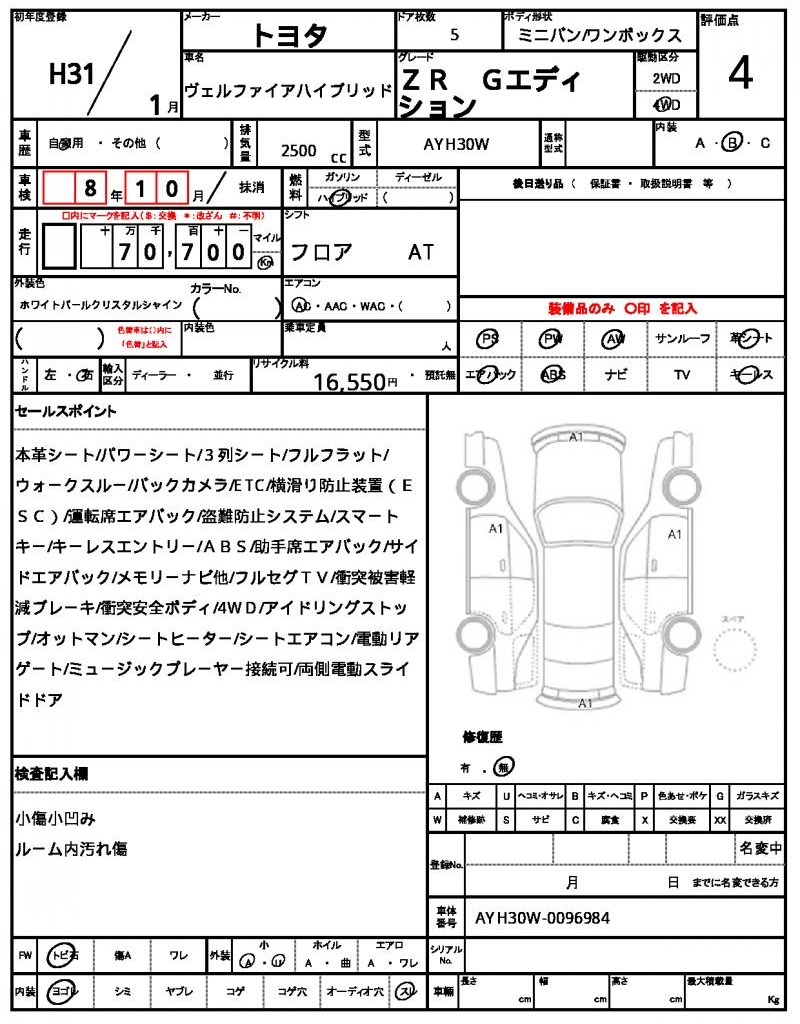 2019 TOYOTA VELLFIRE HYBRID