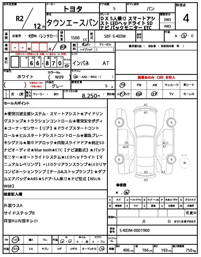 2020 TOYOTA TOWNACE VAN