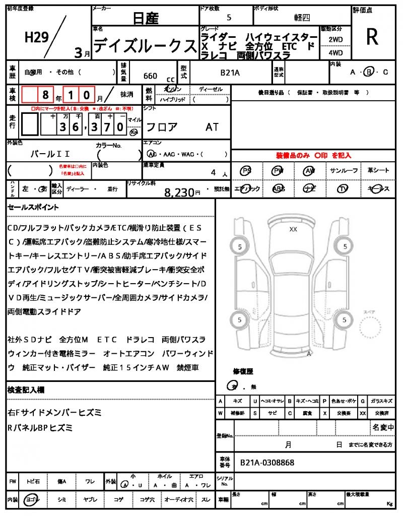 2017 NISSAN DAYZ ROOX
