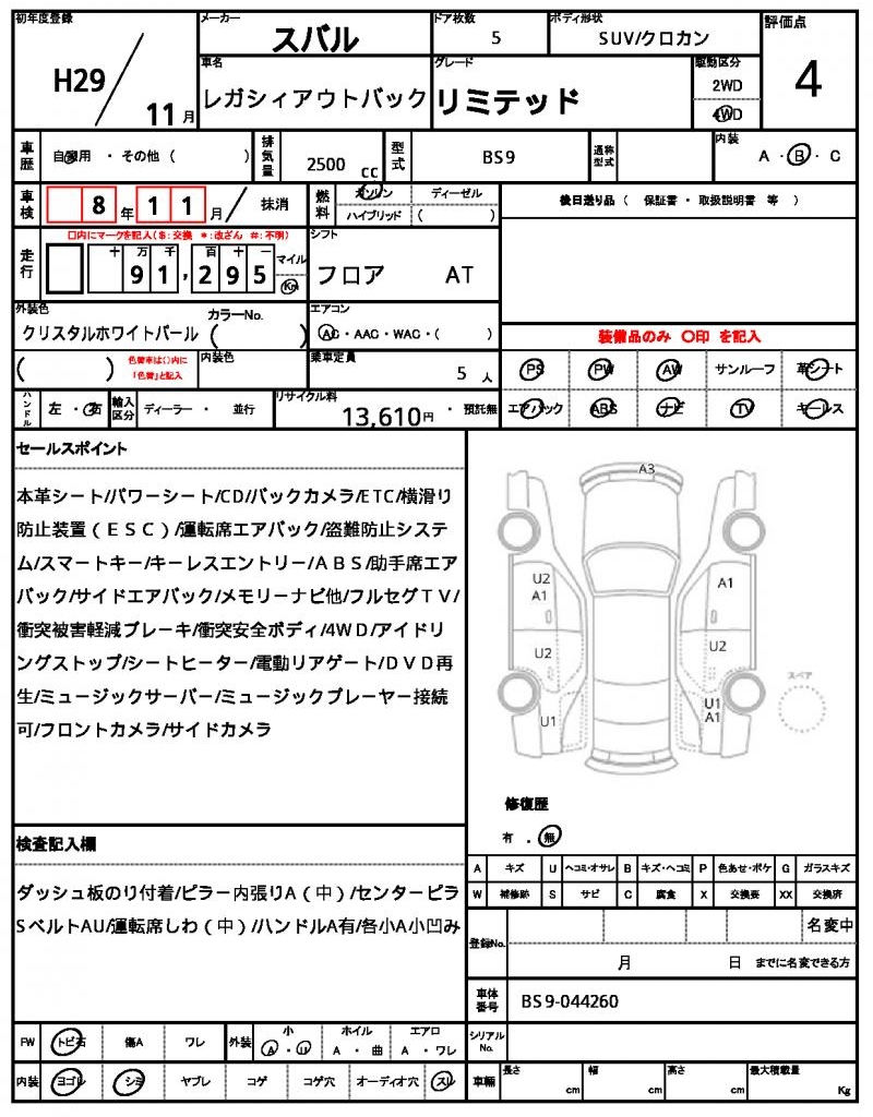 2017 SUBARU LEGACY OUTBACK