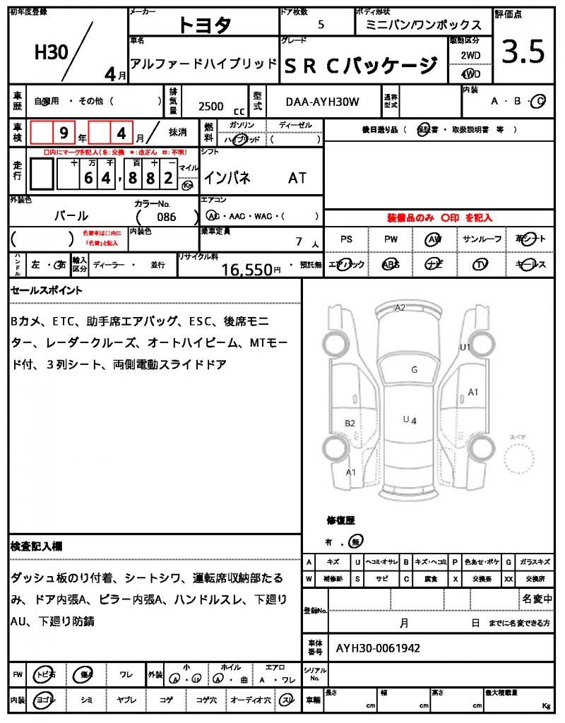 2018 TOYOTA ALPHARD HYBRID