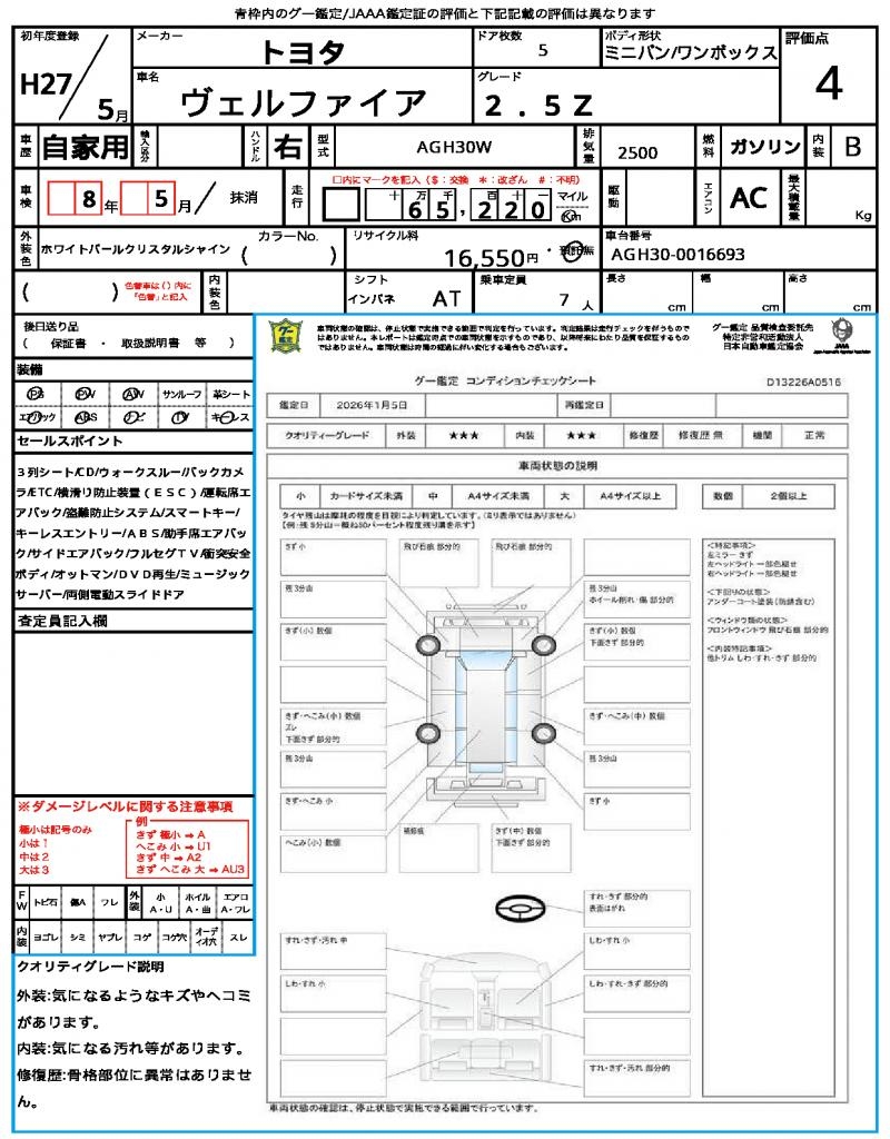 2015 TOYOTA VELLFIRE 2.5Z