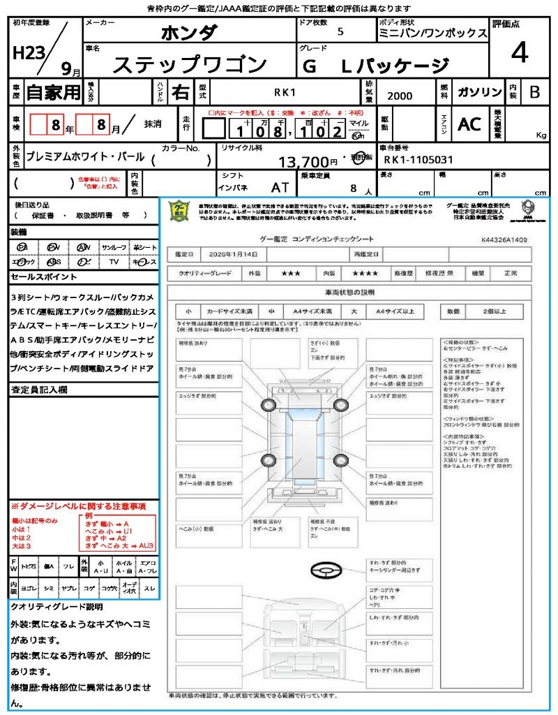 2011 HONDA STEPWAGON G L PACKAGE