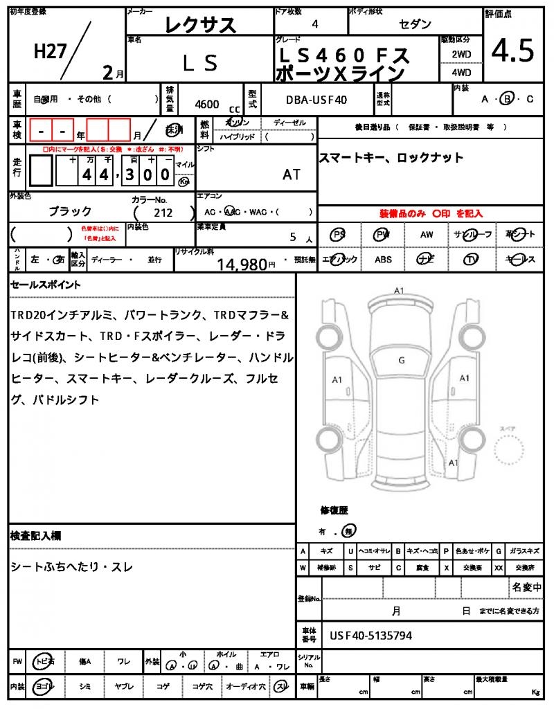 2015 LEXUS LS