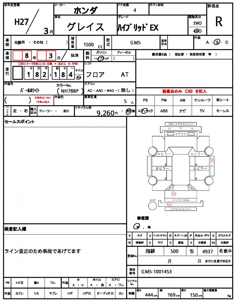 2015 HONDA GRACE HYBRID EX