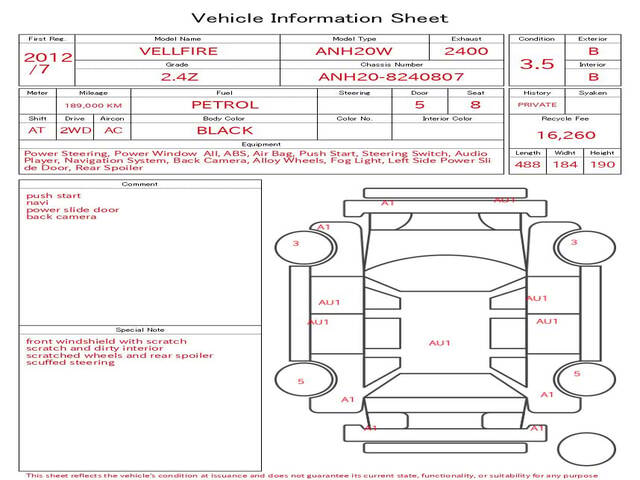 2012 TOYOTA VELLFIRE 2.4Z