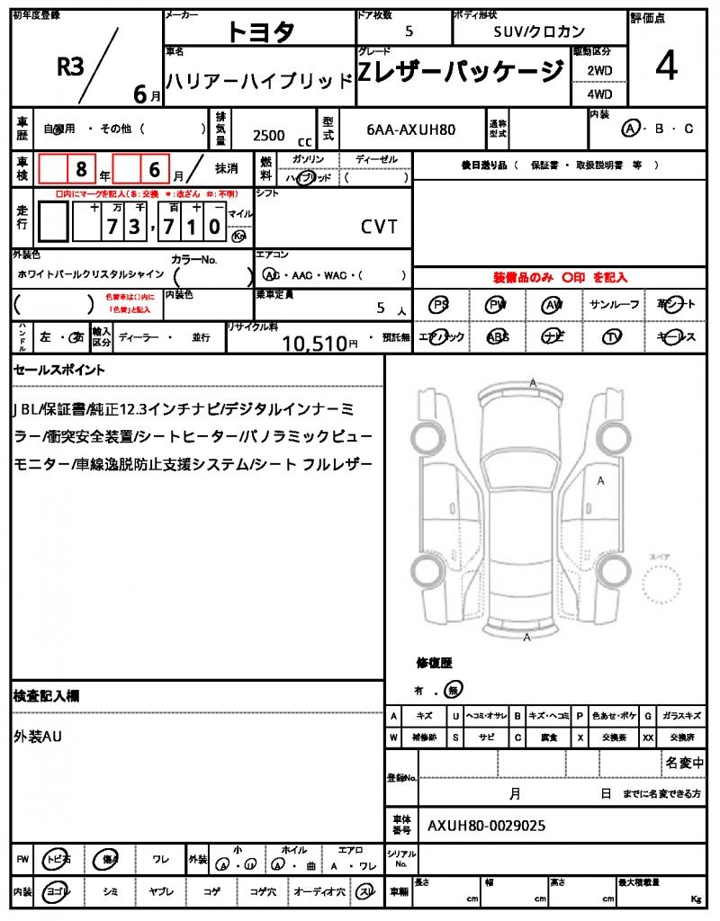 2021 TOYOTA HARRIER HYBRID
