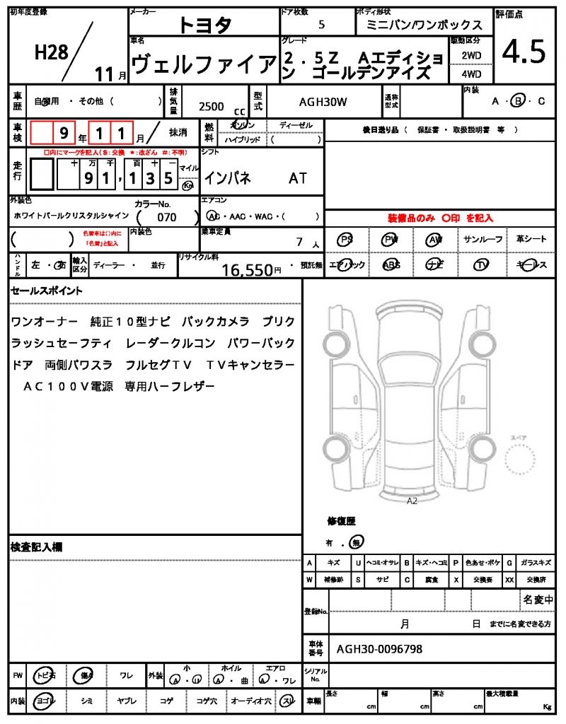 2016 TOYOTA VELLFIRE