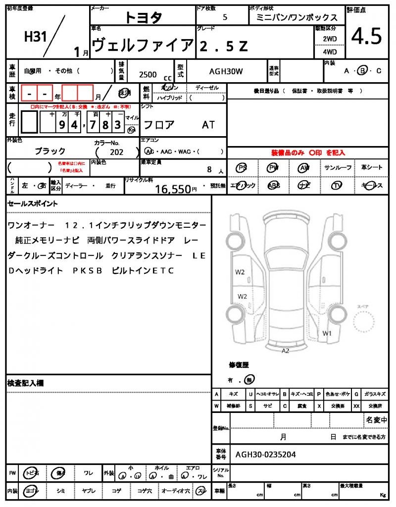 2019 TOYOTA VELLFIRE 2.5Z
