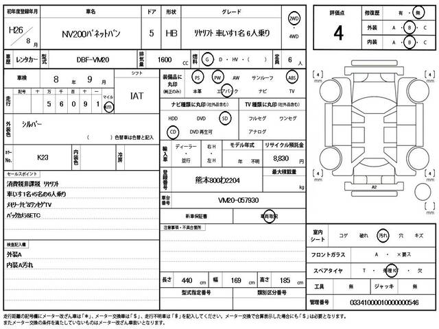 2014 NISSAN NV200 VANETTE VAN