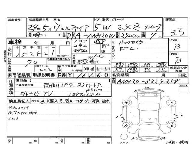 2012 TOYOTA VELLFIRE 2.4Z