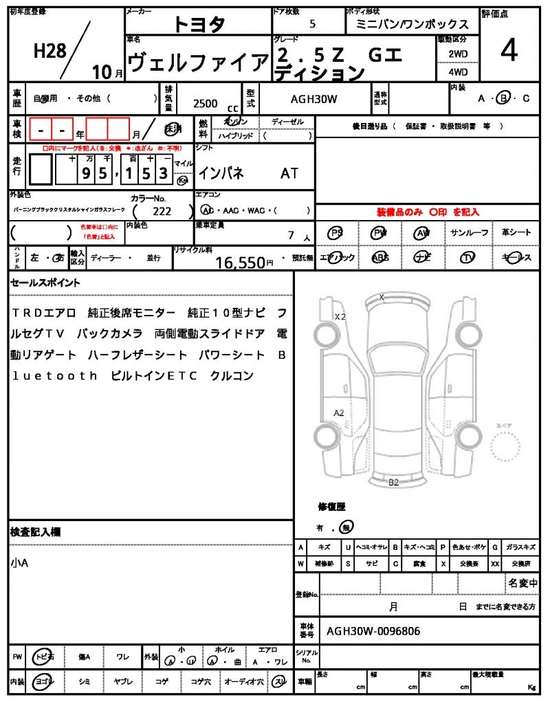 2016 TOYOTA VELLFIRE