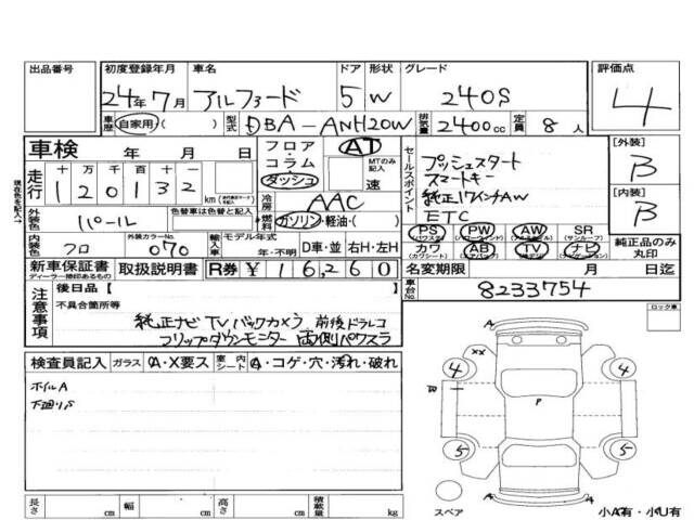 2012 TOYOTA ALPHARD 240S