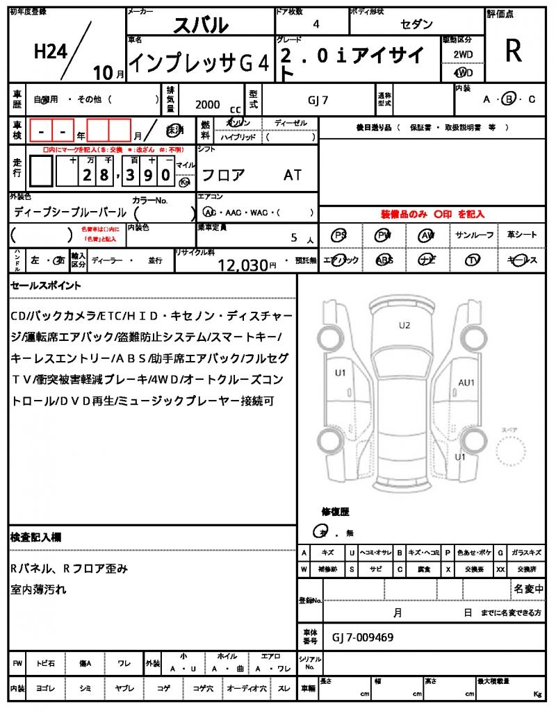 2012 SUBARU IMPREZA G4