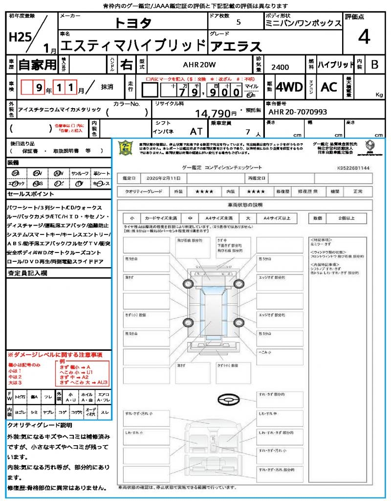 2013 TOYOTA ESTIMA HYBRID