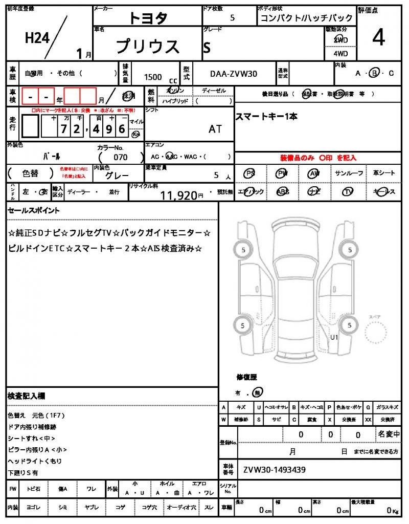 2012 TOYOTA PRIUS S