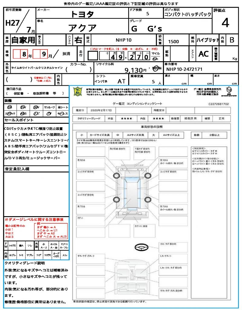 2015 TOYOTA AQUA G G’s