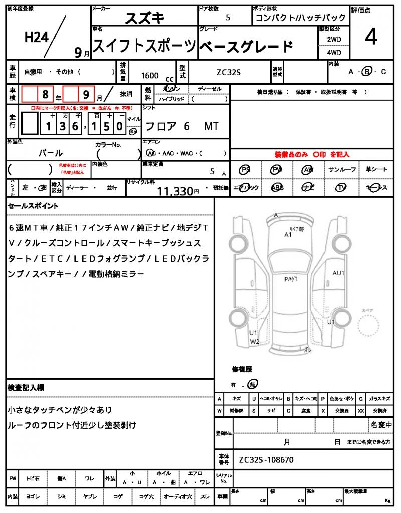 2012 SUZUKI SWIFT SPORT
