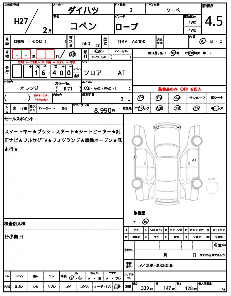 2015 DAIHATSU COPEN