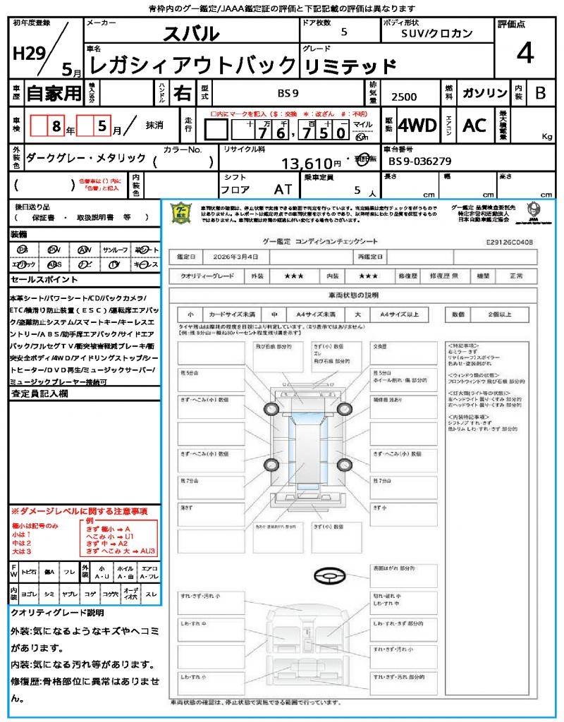 2017 SUBARU LEGACY OUTBACK