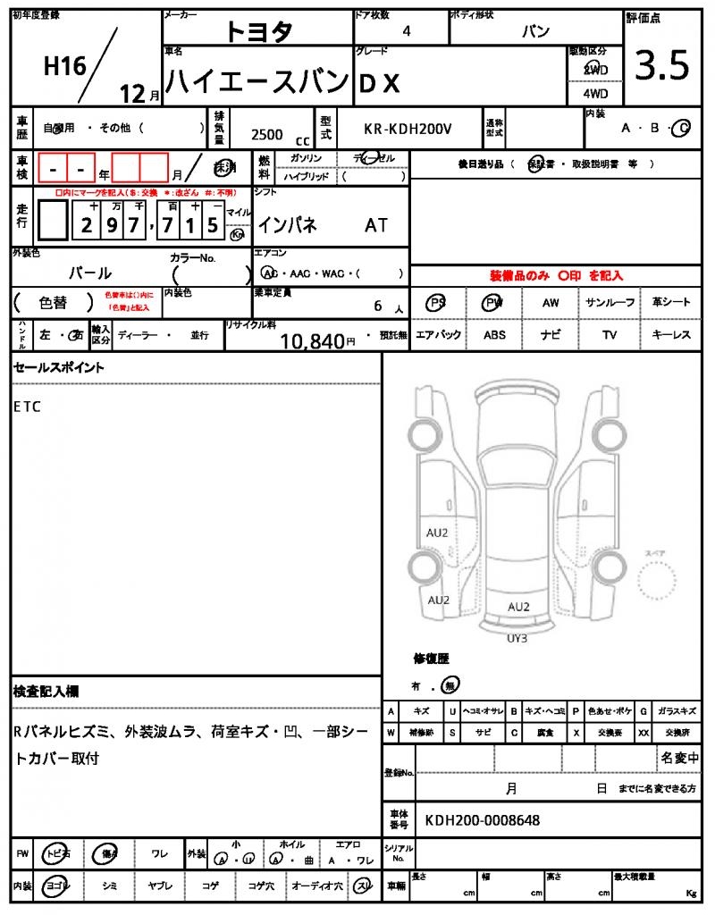 2004 TOYOTA HIACE VAN DX