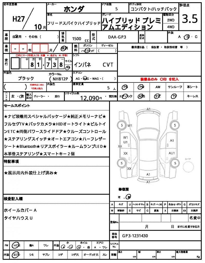 2015 HONDA FREED SPIKE HYBRID