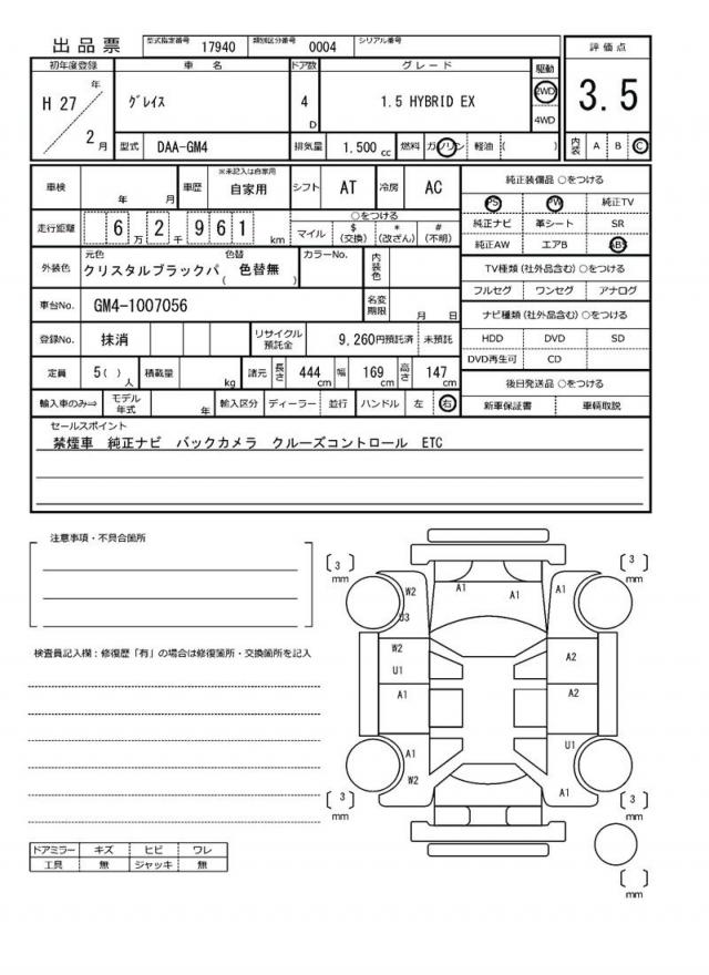 2015 HONDA GRACE HYBRID EX