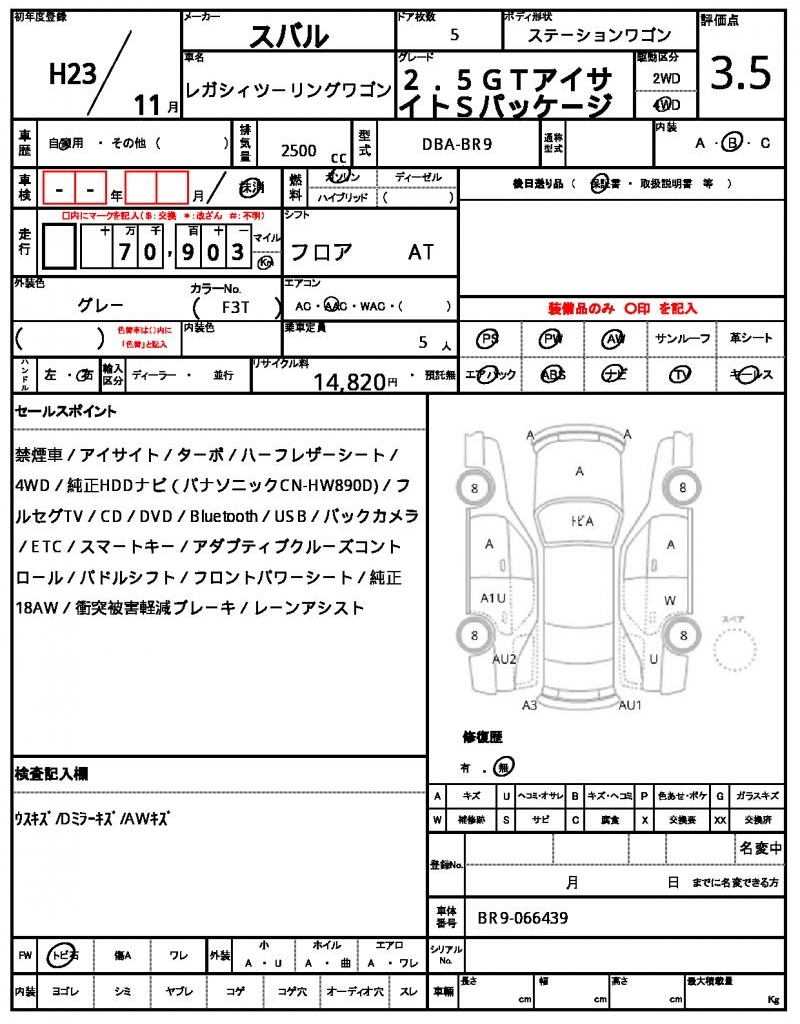 2011 SUBARU LEGACY TOURING WAGON