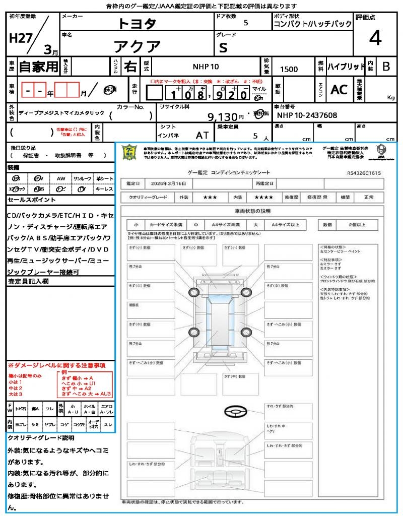 2015 TOYOTA AQUA S