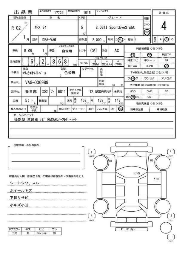 2020 SUBARU WRX S4
