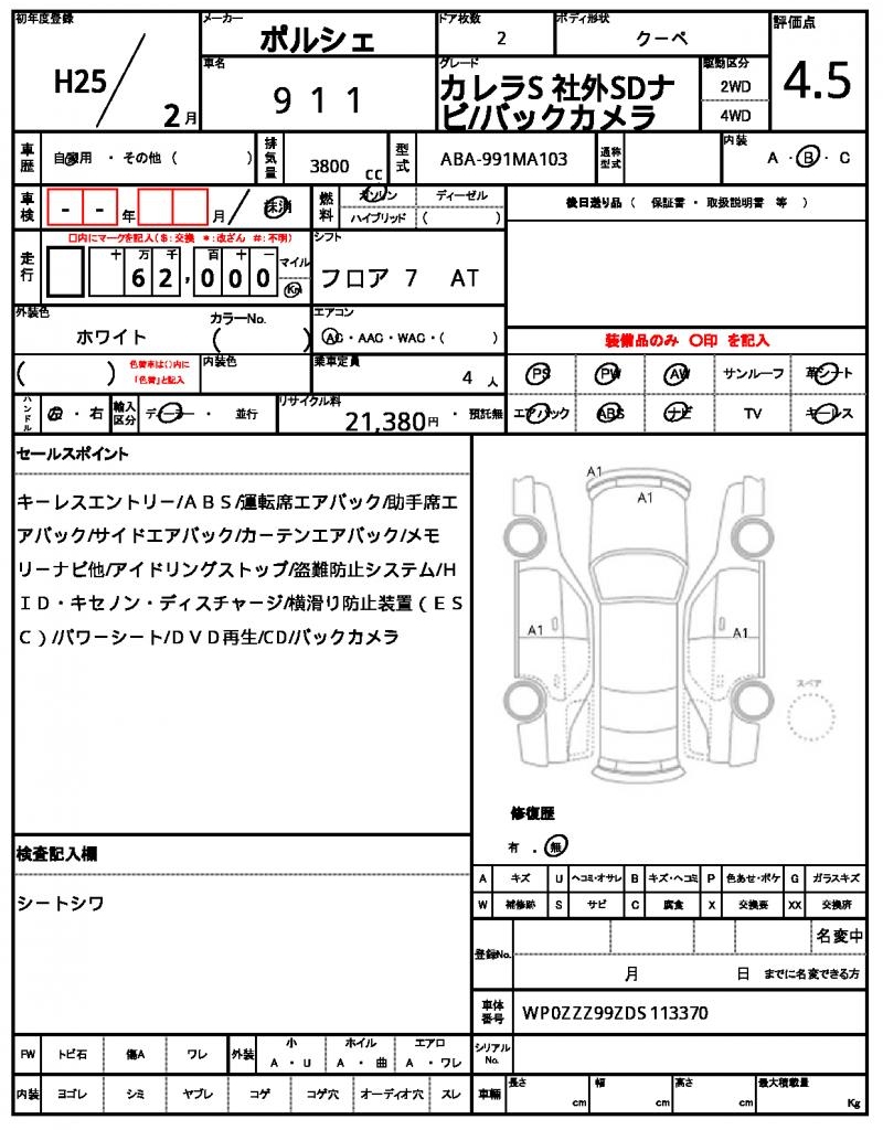 2013 PORSCHE 911 CARRERA S (Left Hand Drive)
