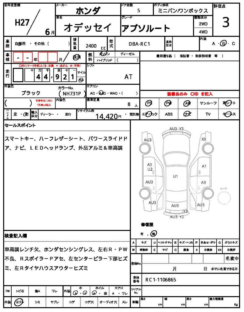 2015 HONDA ODYSSEY ABSOLUTE